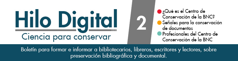 El Centro de Conservación es un espacio dedicado a la investigación, protección y rehabilitación de los diferentes documentos que a diario se incorporan en las colecciones de la Biblioteca Nacional y robustecen el patrimonio bibliográfico y documental colombiano. Es al tiempo, referente de mejores prácticas para la conservación en bibliotecas, así como espacio formador para bibliotecarios de la Red Nacional de Bibliotecas Públicas y de cualquier tipo de bibliotecas con colecciones patrimoniales en el país y la región. | | Conservemos Señales para la conservación de documentos: