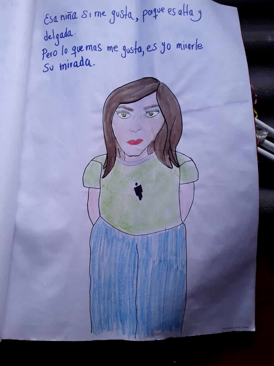 Esa niña sí me gusta, porque es alta y delgada. Pero lo que más me gusta, es yo mirarle su mirada.