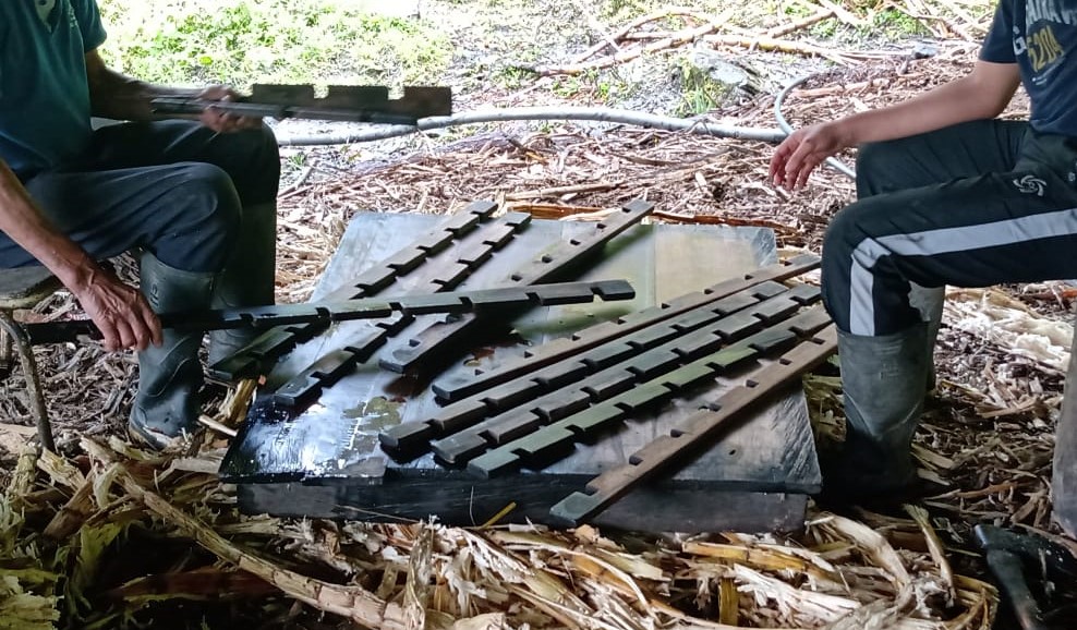 Anteriormente se usaba un trapiche artesanal, impulsado por una yunta de bueyes que daban vueltas para hacerle palanca al trapiche, donde se ponía la caña de azúcar para ser apretada y poder exprimir lo que comúnmente denominan “cochas”.