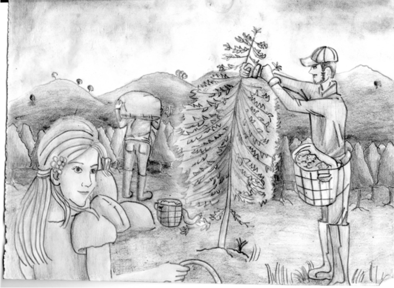Luego vino el manejo de los trabajadores, que es un problema porque es difícil tenerlos contentos en el pago o la comida, y puedo decir con orgullo que siempre se les ha dado un pago justo y que mi mamá les hace la mejor comida que les pueden dar en una finca aun siendo extraños. También se tuvo que conseguir a un caudillo o patrón de corte que es el encargado del orden en los surcos, de vigilar que se coja el café maduro y el que se caiga. Para este tiempo ya no era una niña y tuve que dejar de mirar y empezar a ayudar. Inicié en la casa con mi mamá haciendo aseo y diferentes quehaceres, también lavando enormes cantidades de loza sucia mientras ella escogía café o hacía la siguiente comida.